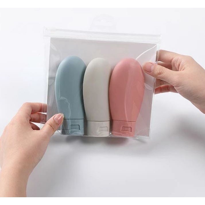 Giới thiệu [Túi Zip Bộ 3 Chai] Set 3 Lọ chiết mỹ phẩm, dầu gội du lịch siêu tiện lợi