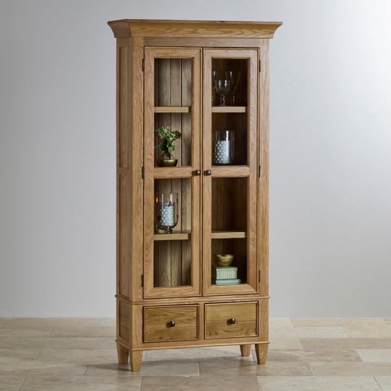 THÔNG TIN CHI TIẾT: Thương hiệu: [IBIE]; Chất liệu chính: [Gỗ sồi/ Veneer]; Màu sắc: [Màu tự nhiên]; Thời hạn bảo hành: [24 tháng]; Thời gian giao hàng: [7-10 ngày]; Phòng chính: [Phòng khách]; Yêu cầu lắp đặt: [Không]; Bộ sưu tập: [Bộ Classic]; Tình trạng tồn kho: [Đặt đóng]; Phong cách: [Classic]; Hoàn thiện: [Sơn PU]; Kích thước (mm): [900 x 380 x 1900]; Xuất xứ: [Việt Nam]; Đơn vị tính: [Cái]; Kiểu dáng: [2 cánh] GIỚI THIỆU SẢN PHẨM: Tủ trưng bày Classic 2 cánh kính được làm từ gỗ sồi trắng Mỹ chắc chắn, với vẻ ngoài và tính năng phù hợp với nhiều không gian nội thất khác nhau. Bốn ngăn kệ đằng sau cánh cửa kính với khả năng chịu lực cực tốt giúp bạn thỏa sức trưng bày các đồ dùng cần thiết như ly, tách, thậm chí là các vật dụng sưu tầm bạn yêu thích mà không sợ mặt kệ bị cong hay nứt gãy. Hai ngăn kéo được làm thủ công, kết cấu ghép mộng chắc chắn hỗ trợ cất giữ những vật dụng khác tạo sự ngăn nắp gọn gàng cho phòng khách hay bất kì căn phòng nào. Thiết kế đặc trưng bởi kiểu dáng thanh lịch đi từ các đường nét bo tròn ở viền khung, cửa cánh và các ngăn kéo, cho đến các chi tiết giật cấp, tay cầm mang phong cách cổ điến. Toàn bộ bề mặt tủ được sơn PU cao cấp giúp giữ nguyên được vẻ đẹp và chất lượng của gỗ theo thời gian. Các bạn có thể xem thêm các mẫu khác thuộc bộ sưu tập Classic tại đây.