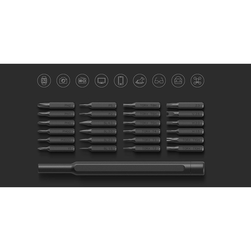 Đồ vật trong nhà bạn cần được sửa chữa và đòi hỏi phải tháo rời các bộ phận vốn được đính lại bằng ốc vít ra. Thế nhưng tua vít của bạn không thể kiêm được nhiều chức năng trong cùng một sản phẩm nên không thể dùng một chiếc tua vít duy nhất để sửa chữa cho nhiều loại ốc vít khác nhau được. Chính vì vậy, gần đây Xiaomi đã cho ra đời Bộ tua vít bỏ túi đa năng Xiaomi Mijia Wiha cực kỳ tiện dụng cho người dùng. Thông tin sản phẩm bộ tua vít bỏ túi đa năng Xiaomi Mijia Wiha: Chất liệu: hợp kim aluminum, thép cán nóng HRC 60 Khối lượng: 300g Kích thước: 168 x 67 x 17mm Màu sắc: xám Bộ tua vít bỏ túi đa năng Xiaomi Mijia Wiha là sản phẩm mới từ Mijia do chi nhánh phụ là Wiha sản xuất. Wiha vốn được biết đến là thương hiệu sản xuất dụng cụ sửa chữa hàng đầu tại Đức nói riêng và trên thế giới nói chung với hơn 75 năm hoạt động và phát triển tại Châu Âu, Châu Á và Mỹ. Chính vì vậy, nhắc đến Wiha người dùng hoàn toàn có thể yên tâm về chất lượng và tính tiện dụng của sản phẩm. Bộ tua vít bỏ túi đa năng Xiaomi Mijia Wiha bao gồm 24 đầu tua vít với kích cỡ, kiểu dáng khác nhau được chia làm 4 tầng, mỗi tầng 6 loại tua vít. Trên đầu vị trí của mỗi tua vít, nhà sản xuất có vẽ hình ảnh minh họa cho loại ốc vít tương ứng với loại tua vít đó, giúp người dùng dễ dàng và nhanh chóng tìm ra loại tua vít phù hợp để sử dụng. Tua vít được thiết kế dạng oval mỏng, nhỏ gọn, với đầu vít được gia công kỹ lưỡng có độ chính xác cao. Toàn bộ 24 đầu vít được đựng trong hộp chứa hình chữ nhật nhỏ gọn. Tổng trọng lượng bộ sản phẩm chỉ có 300g cùng thiết kế gọn gàng giúp người dùng dễ dàng bỏ túi và mang theo bất cứ đâu. Cả hộp đựng lẫn tay cầm của tua vít đều được làm từ chất liệu hợp kim aluminum được xử lý anodize, giúp sản phẩm không bị gỉ sét trong bất cứ môi trường nào. Bên cạnh đó, bộ sản phẩm còn được tích hợp khả năng chống thấm mồ hôi và chống mài mòn. Do đó, bạn có thể yên tâm sử dụng mà không lo bất cứ vấn đề nào với bộ sản phẩm này. Đầu vít được gia công từ chất liệu thép cán nóng HRC 60 cùng hợp kim aluminum có tính từ, giúp đầu vít có khả năng tìm kiếm những con ốc nhỏ bị rơi rớt ở đâu đó trong lúc sửa chữa thiết bị. Bạn có thể sử dụng bộ tua vít cho nhiều mục đích khác nhau như sửa cửa, đồ chơi, điện thoại, máy tính hay bất cứ đồ dùng gia dụng nào.