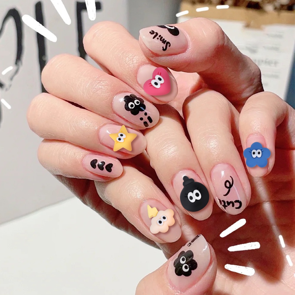 Giới thiệu Túi 10 / 50 Hạt Tròn Mini Họa Tiết Hoạt Hình Trang Trí Móng Tay DIY