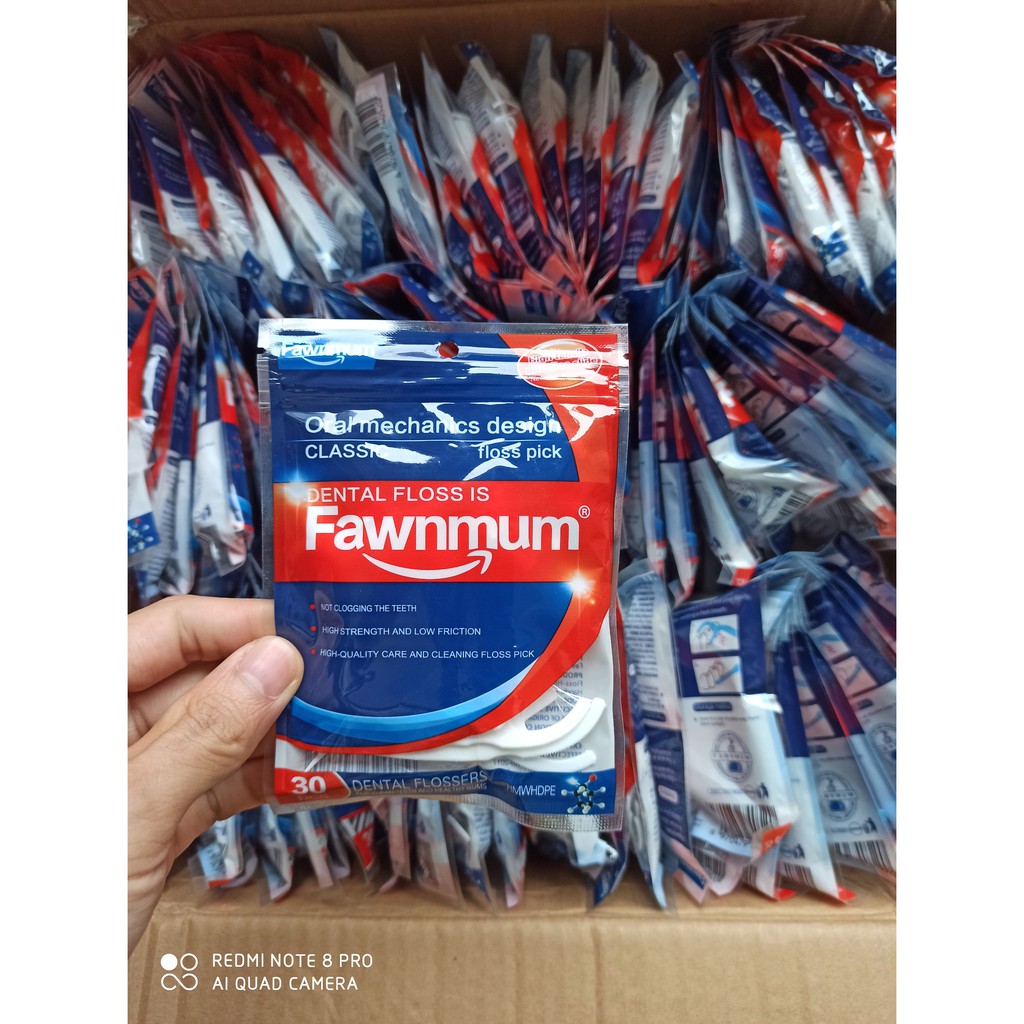 HÀNG SẴN SLL TẠI KHO. Lên đơn, ship hàng ngay và luôn sau khi khách hàng chốt đơn. Shop cam kết hàng chính hãng 100%, cam kết 1 đổi 1 nếu khách hàng không ưng ý về sản phẩm. Tăm chỉ nha khoa Fawnmum túi 30 chiếc Tăm chỉ nha khoa Fawnmum là sự kết hợp giữa chỉ tơ nha khoa và tăm xỉa răng, một đầu dùng như tăm chỉ nha khoa, một đầu dùng như tăm xỉa răng với chất liệu bằng nhựa mềm không làm hại nướu mà vẫn loại trừ các mảng bám, thức ăn thừa trong khe răng, giúp giữ răng miệng sạch và chắc khỏe Sản phẩm đảm bảo 🙋 AN TOÀN 🙋 TIỆN DỤNG 🙋 ------------------------------------------------------------------ SẢN PHẨM 3 TRONG1 💐Đầu chỉ nha khoa có dùng để lấy những cặn thức ăn còn sót mà tăm không chạm đến được, đồng thời nhẹ nhàng, chà xát bề mặt răng, ngăn chặn các mảng bám chân răng 💐 Thân chỉ nha khoa là một mặt phẳng có gờ, có độ ma sát cao, giúp người sử dụng dễ dàng cầm, nắm ngay cả khi tay trơn, ướt sau khi dùng các món rán, nướng. 💐Mặt lưng chỉ nha khoa có răng cưa dùng để làm sạch lưỡi ------------------------------------------------------------- 💐Sợi chỉ nha khoa có độ đàn hồi, dai , chắc, không đứt gẫy trong quá trình sử dụng