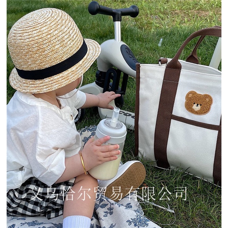 Giới thiệu Túi bỉm sữa họa tiết gấu chất vải canvas dày dặn cho mẹ bỉm sữa có khóa kéo giữa