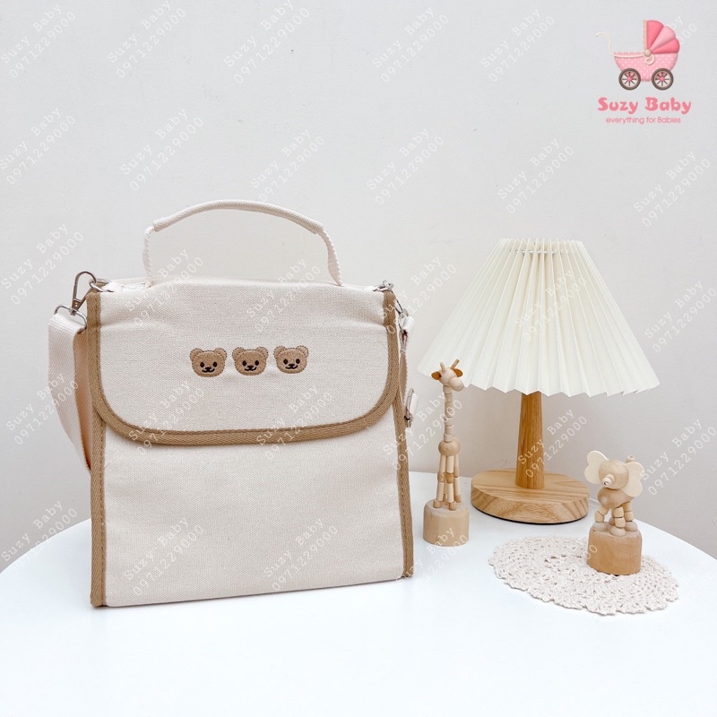 Túi bỉm sữa ChyBili Phong cách Hàn, túi bỉm sữa thêu gấu giữ nhiệt sữa và đồ ăn cho bé ạ