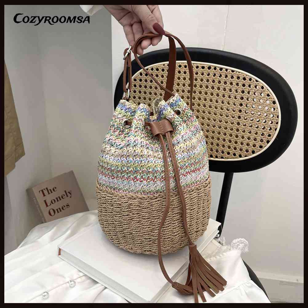 Giới thiệu Túi Bucket Dây Rút Đeo Dưới Cánh Tay Phối Tua Rua Thời Trang Cho Nữ