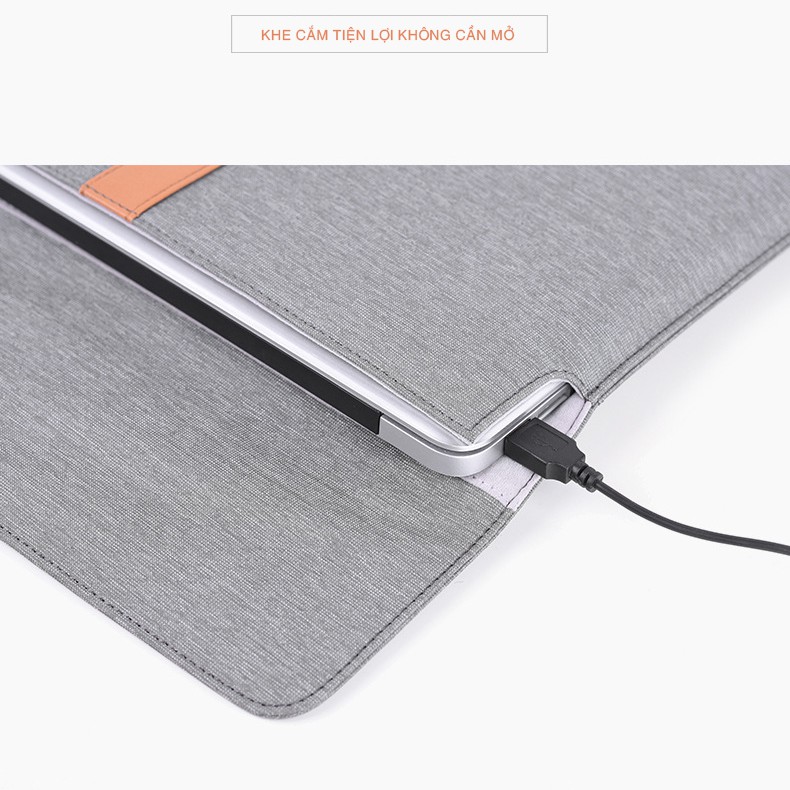 Chất liệu: Vải Polyester Cationic siêu bền chống nước, giữ form tốt Ngăn phụ: 2 ngăn mặt sau Ngăn chính: Bọc nhung siêu mềm mượt, lót nhung toàn bộ mặt trong túi Đóng mở bằng nam châm điện vĩnh cửu, chắc chắn Độ dày lớp chống sốc: 8/10 Có khe cắm bút, có khe cắm sạc Bảo hành: 06 tháng chính hãng lỗi đổi mới Đây là loại túi chống sốc dạng cầm tay rất sang chảnh và lịch sự, phù hợp để mang đi Cafe, đi họp với đặc điểm là siêu mỏng và nhẹ