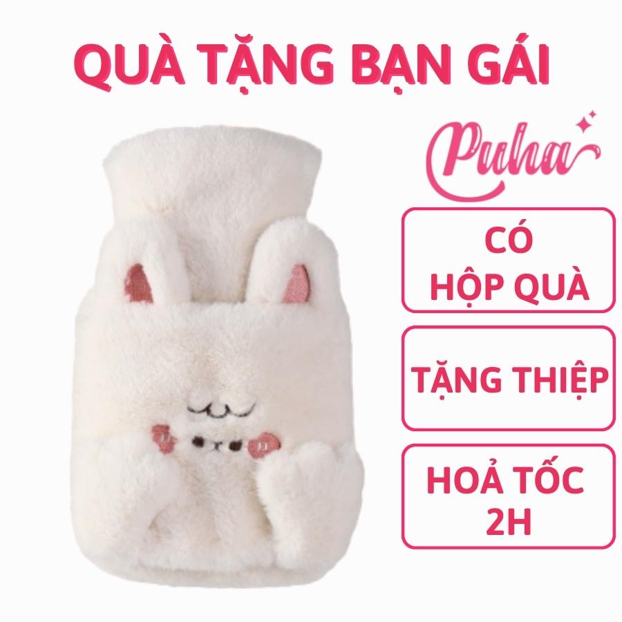 Giới thiệu Túi chườm bụng kinh PUHA 500ml, túi chườm ấm nóng sưởi ấm bụng cho nữ, Mèo Trắng.