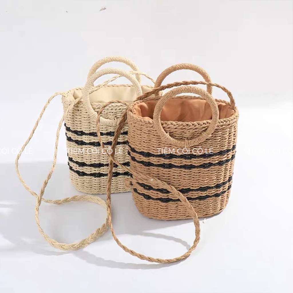 Giới thiệu Túi cói đi biển sọc ngang quai tròn, giỏ xách phụ kiện du lịch, chụp ảnh - Tiệm Cói Cô Lê