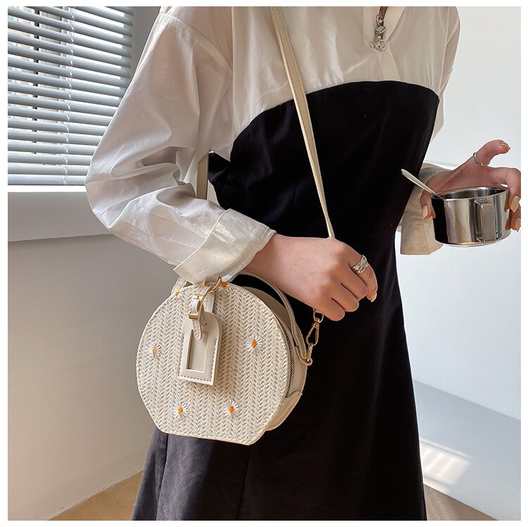 Giới thiệu Túi cói JASMIN NOIR hình tròn nhỏ đeo chéo kiểu dáng đơn giản phong cách retro dành cho nữ