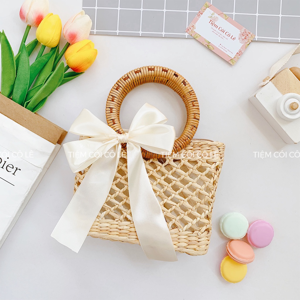 Giới thiệu Túi cói mini, làn cầm tay hình vuông đan ô thưa size 17cm - Tiệm Cói Cô Lê