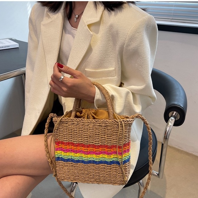 Giới thiệu Túi cói vuông - sọc ngang cầu vồng - đeo chéo đeo vai (mẫu mới 2022)