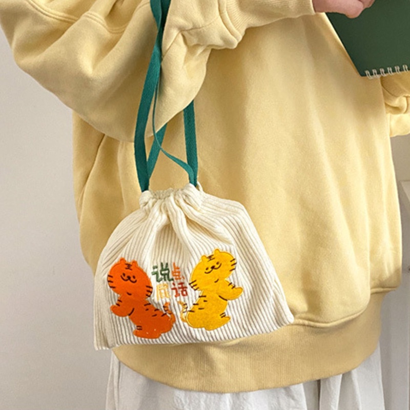 Giới thiệu Túi Dây Rút Bằng Vải Nhung Họa Tiết Hoạt Hình Giáng Sinh Cho Nữ