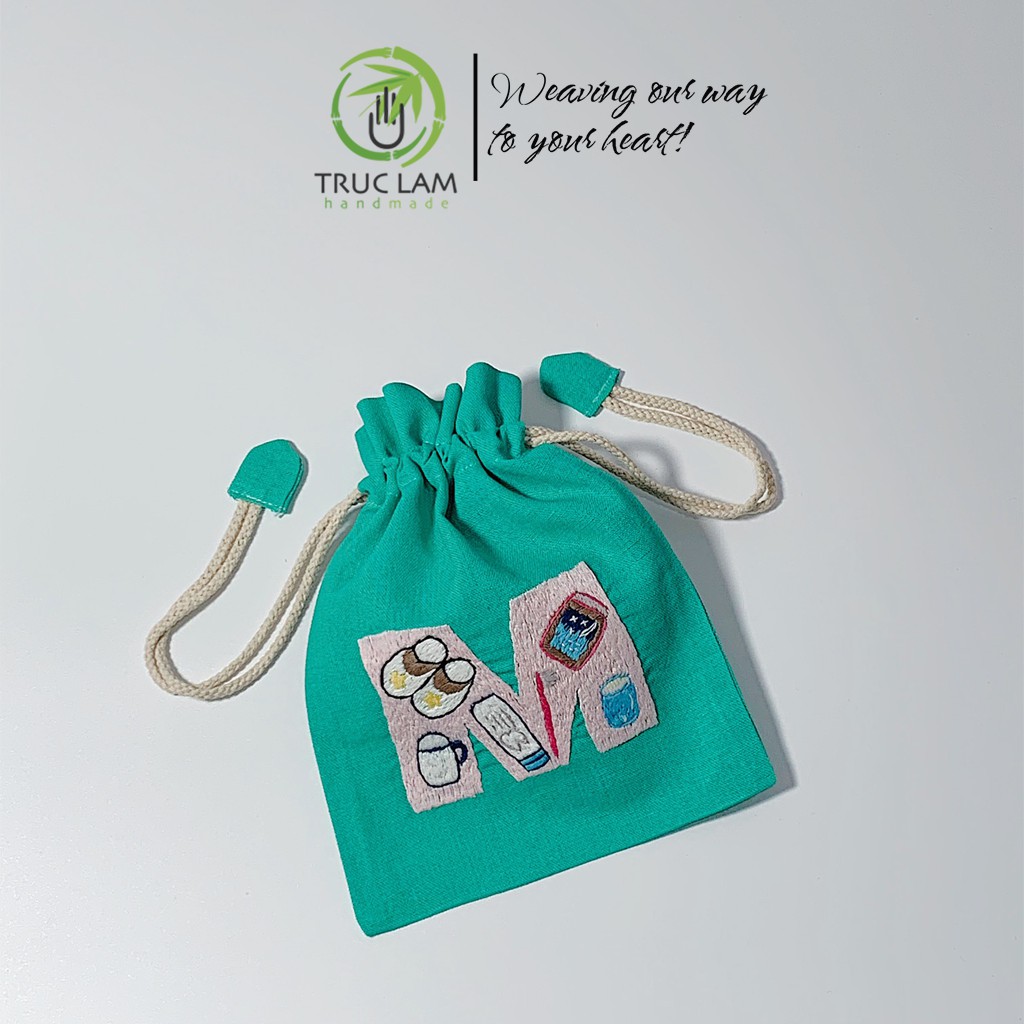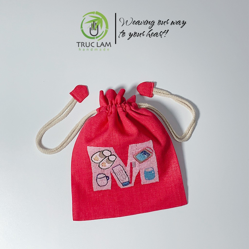 Giới thiệu Túi Dây Rút Thêu Tay Họa Tiết Chữ Cái M Phối Hoa Văn Nhiều Màu Sắc - Trúc Lâm Handmade