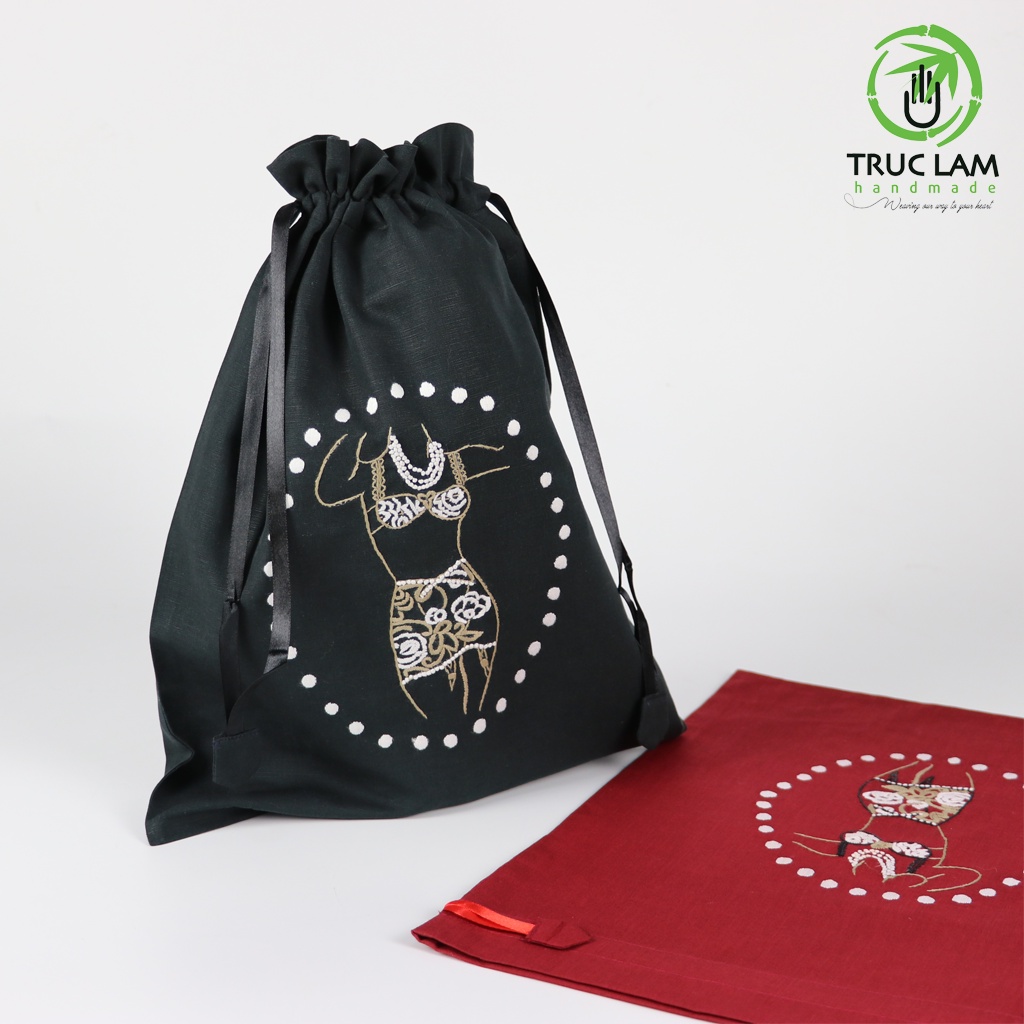 Giới thiệu Túi Dây Rút Thời Trang Thêu Tay Họa Tiết Cô Gái Bikini Siêu Nhẹ - Trúc Lâm Handmade