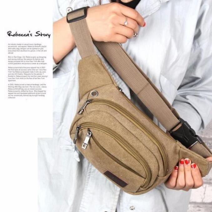 Giới thiệu Túi đeo bụng 3 ngăn Wanfuniao chất liệu vải dày bền chống trầy xước, có nhiều ngăn đựng - HV Store 390
