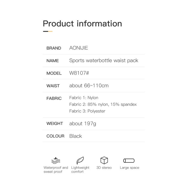 Ô Tô & Xe Máy & Xe Đạp > Phụ kiện xe đạp > Khác > Túi Đeo Bụng Đai Đeo Hông Chống Thấm Nước Đạp Xe Du Lịch Chạy Bộ Thể Thao Aonijie W8107 Kèm 1 Bình Nước 600ml