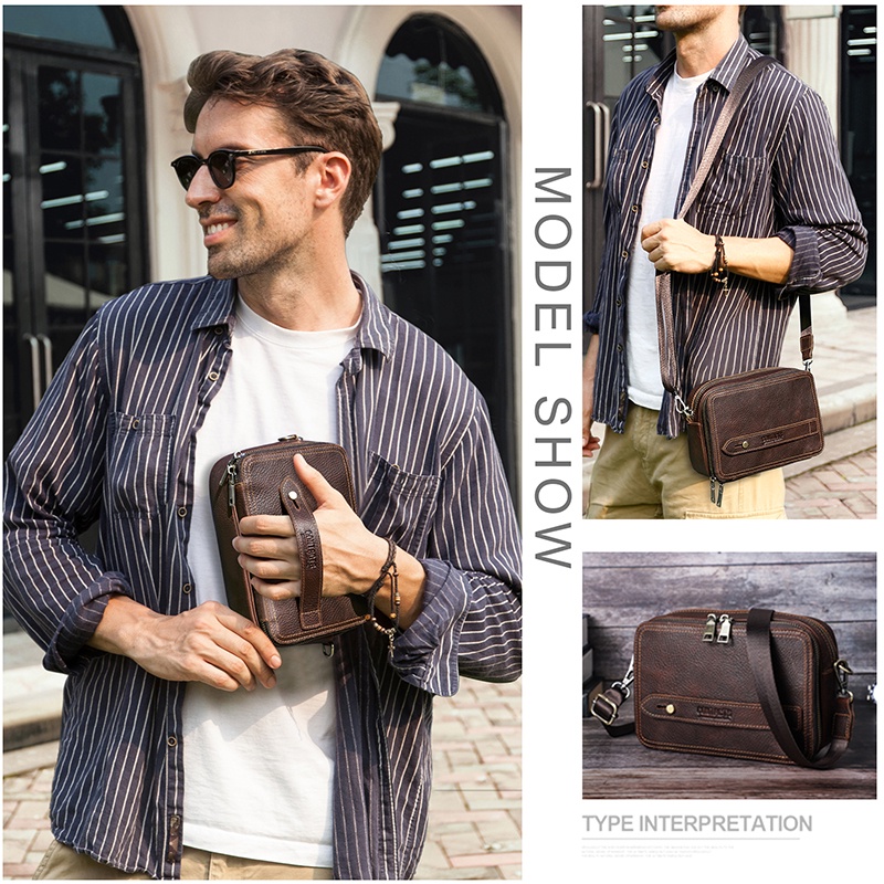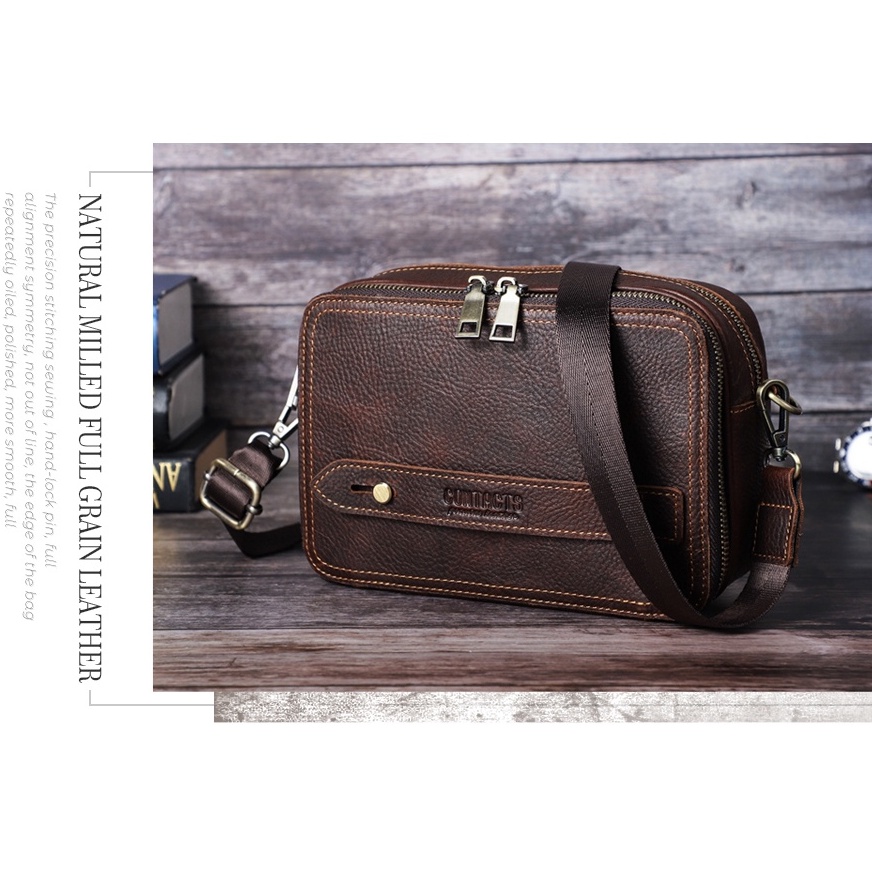 Giới thiệu Túi đeo chéo CONTACT'S làm từ da thật màu trơn phong cách vintage thời trang dành cho nam