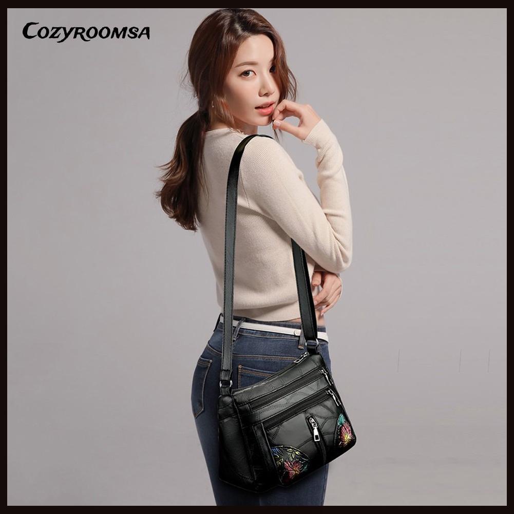 Giới thiệu Túi đeo chéo da cừu in họa tiết hoa phong cách cổ điển thời trang cho nữ