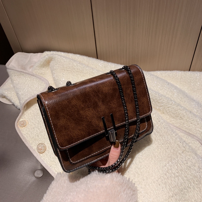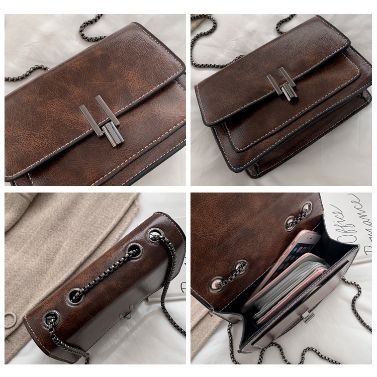 Giới thiệu Túi Đeo Chéo Da PU Hình Vuông Màu Trơn Phối Dây Xích Thời Trang Cho Nữ