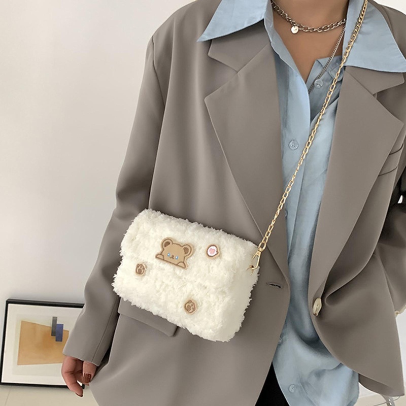 Giới thiệu Túi Đeo Chéo Đan Len Thủ Công Hình Gấu Bông Mini Đựng Điện Thoại Chìa Khóa