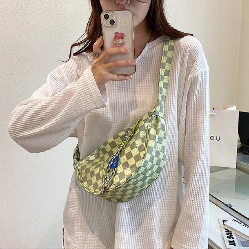 Giới thiệu Túi Đeo Chéo Họa Tiết Sọc Caro,Dây đeo vai có thể điều chỉnh, mới cho mùa hè 2022(không có phụ kiện)