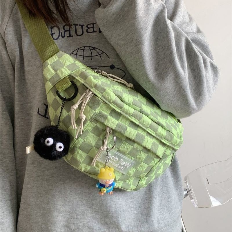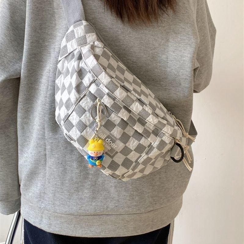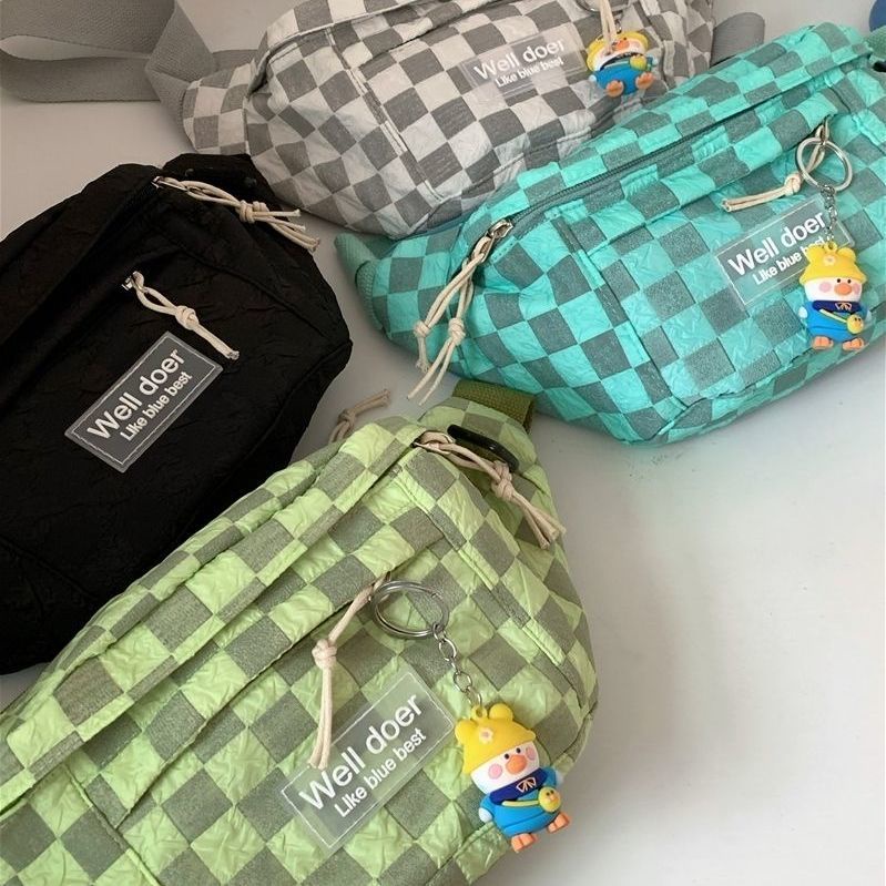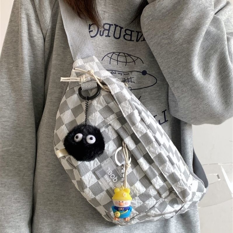 Giới thiệu Túi Đeo Chéo Họa Tiết Sọc Caro Phong Cách Harajuku Có 4 Kiểu Cho Nữ