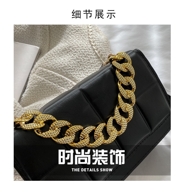Giới thiệu Túi đeo chéo Jasmin Noir dáng vuông nhỏ may chần kẻ ô phối quai xích thời trang cho nữ