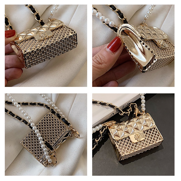 Chất liệu: Hợp kim Kích thước: Chiều dài: 6 cm, chiều cao: 5 cm, độ dày: 2 cm Sức chứa: Có thể đựng điện thoại di động, ví, son môi và các món đồ hàng ngày khác Do đo lường thủ công, sẽ có sai số 1-3 cm ~