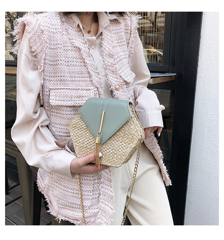 Giới thiệu Túi Đeo Chéo JASMIN NOIR Nhỏ Bằng Da PU Và Rơm Hình Lục Giác Thời Trang Cho Nữ