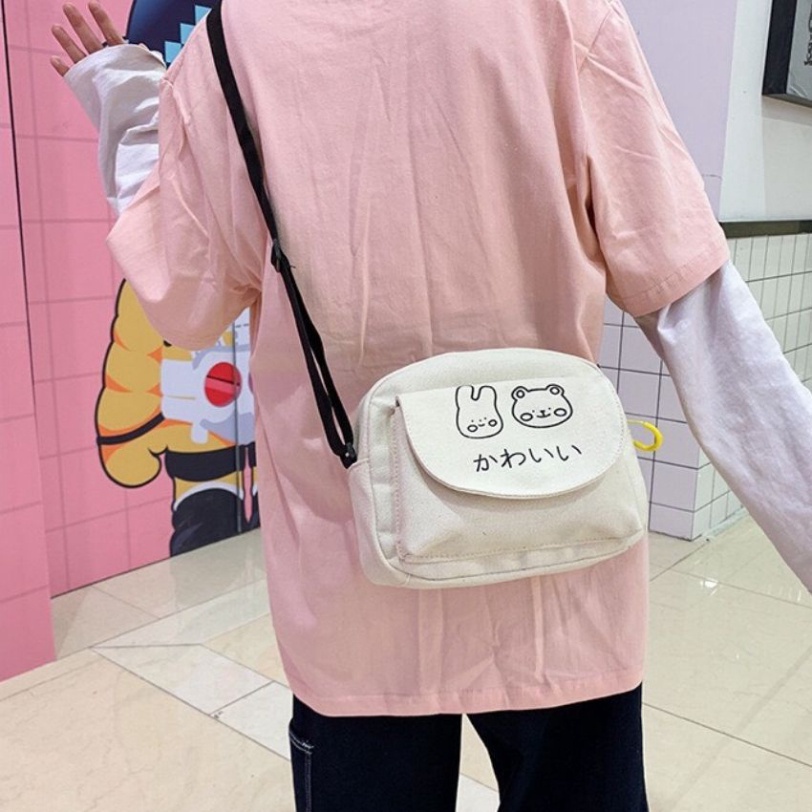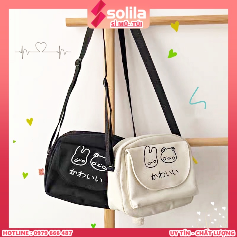 Giới thiệu Túi đeo chéo mini vải canvas in hình gấu thỏ dễ thương