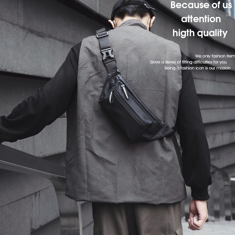 Giới thiệu Túi đeo chéo nam TOPMAN, túi bao tử mini vải polyester chống nước phong cách màu Đen T007