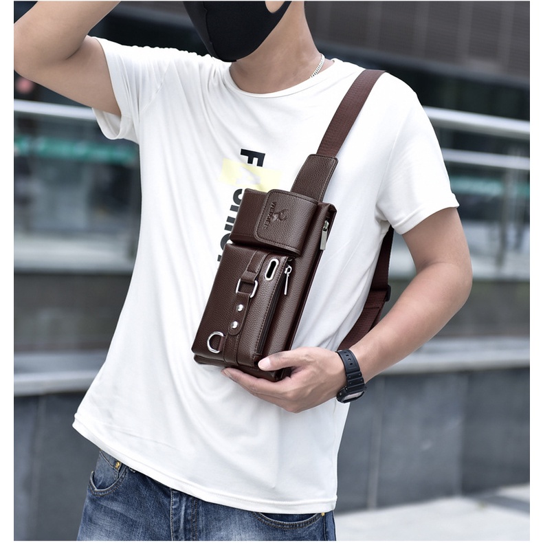 Giới thiệu Túi Đeo Chéo Nam, Túi Da Đeo Ngực, Da PU Chống Nước Cao Cấp Phong Cách Hàn Quốc, Túi Da Đeo Chéo Weixier