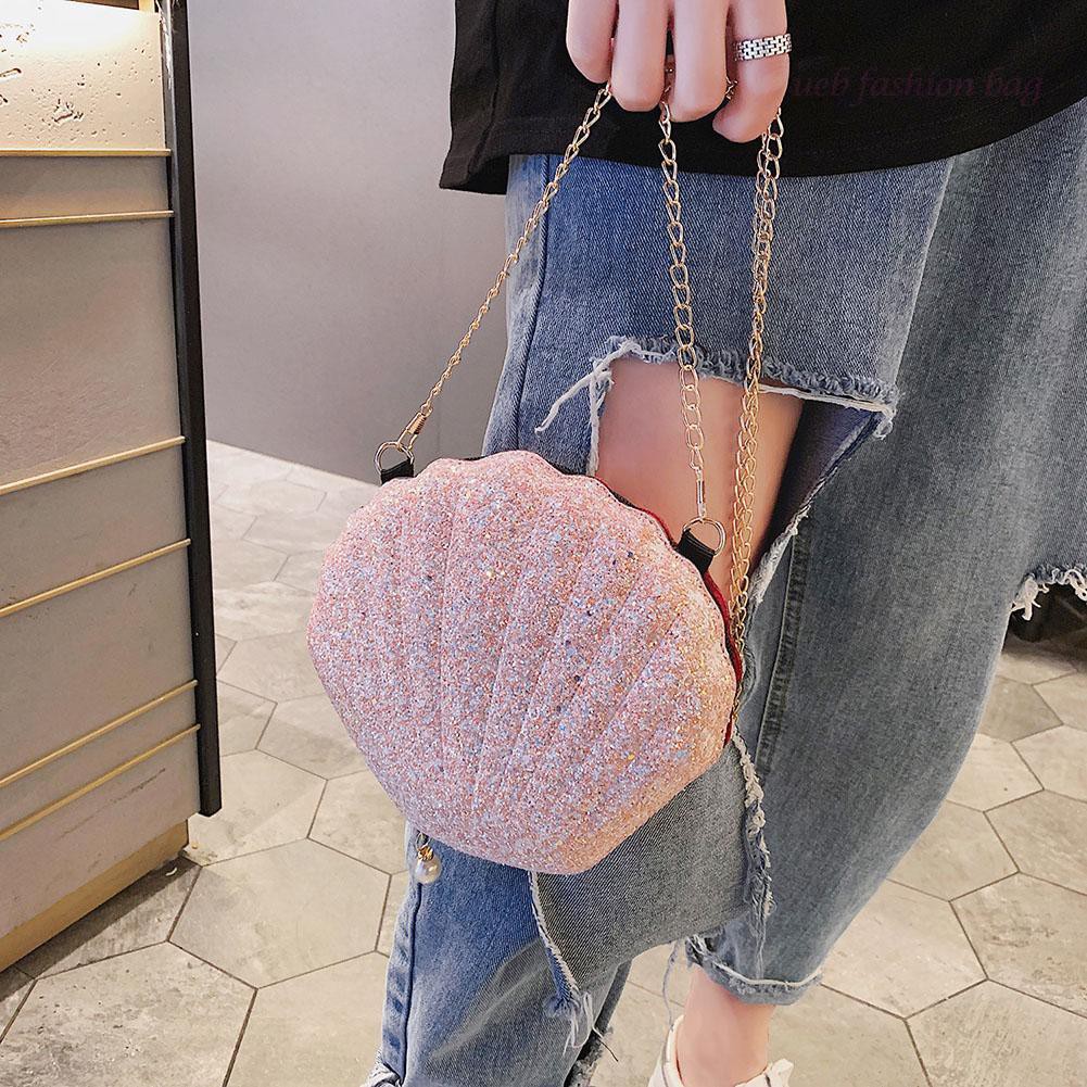 Túi đeo chéo nữ hình vỏ sò đính kim sa thời trang đẹp giá rẻ Tất cả sản phẩm của shop đều giống như trong ảnh. Nếu có sai sót thì các bạn được đổi trả trong vòng 7 ngày ạ.