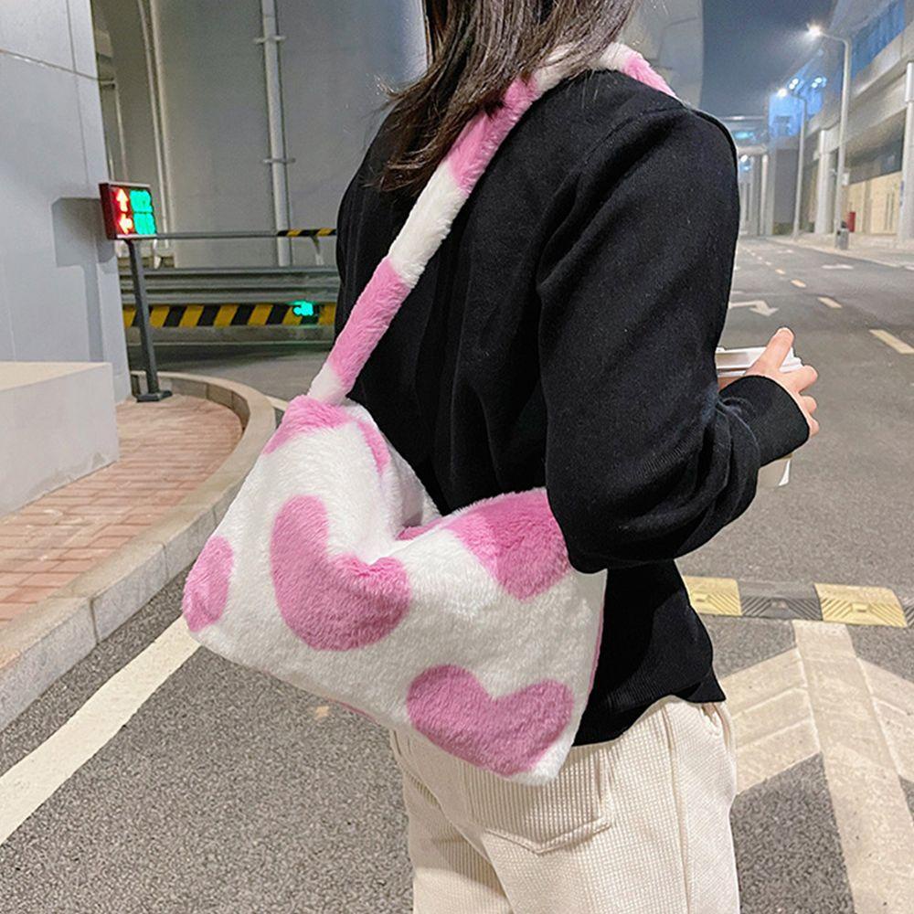 3.Mùi ít là bình thường . Vui lòng đặt nó bên ngoài trong vài ngày , mùi sẽ biến mất . Túi đeo vai Túi xách Túi đeo chéo Totes Mềm mại Sang trọng Lông mịn Hình trái tim In Dung tích lớn Phụ nữ Nữ