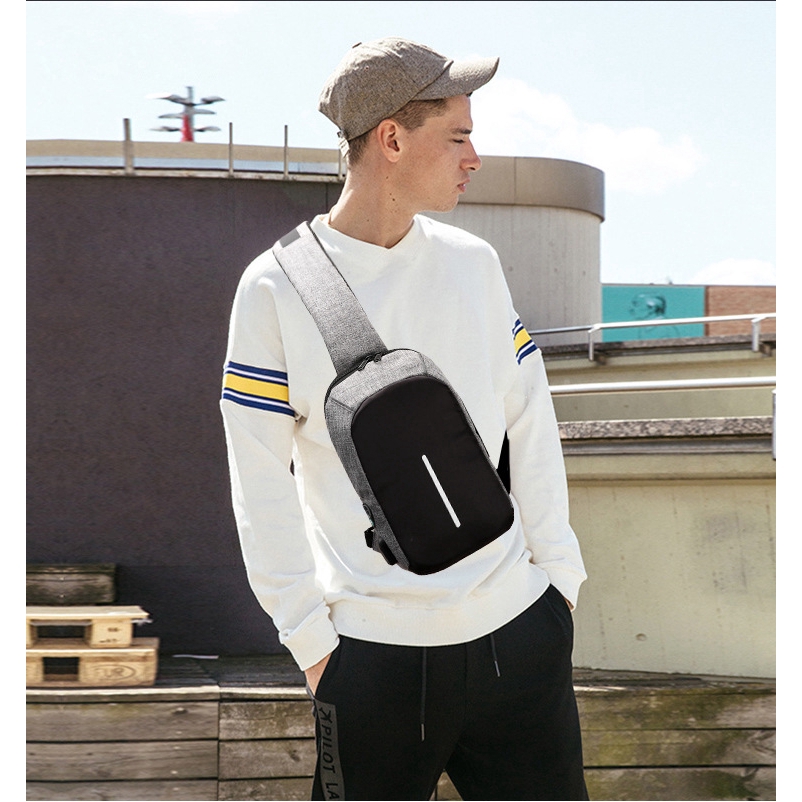 Giới thiệu Túi đeo chéo thời trang nam bằng vải polyester có cổng sạc USB cho điện thoại