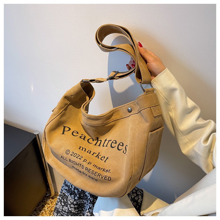 Túi Ví Nữ > Túi Đeo Chéo & Túi Đeo Vai > Túi đeo chéo tote vải canvas in chữ Maket 2022 phong cách Nhật Bản đi học đi chơi dành cho cả nam và nữ tiện dụng