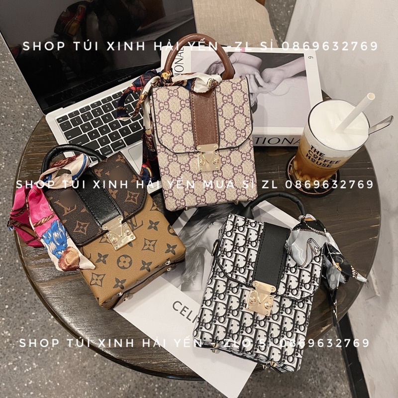Giới thiệu túi đeo chéo, túi điện thoại đứng dáng hộp khoá sập( tặng kèm khăn lụa)