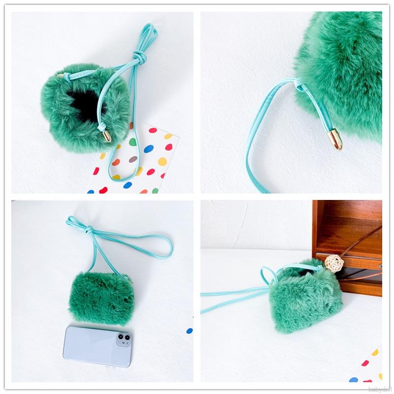 Kids Crossbody Bag Baby Girls Cute Personality Shoulder Bags Girl Pure Color Plush Design Coin Purse Kid Messenger Bag Little Girl Fashion Korean Princess Style