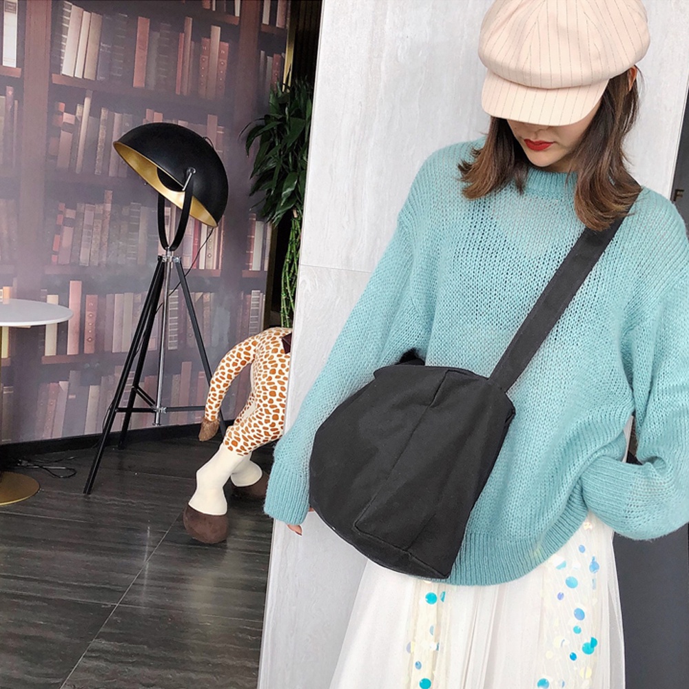 Giới thiệu Túi Đeo Chéo Vải Canvas Cỡ Lớn Phong Cách Ulzzang Đựng Sách Vở Đồ Thoải Mái Đi Học Đi Chơi