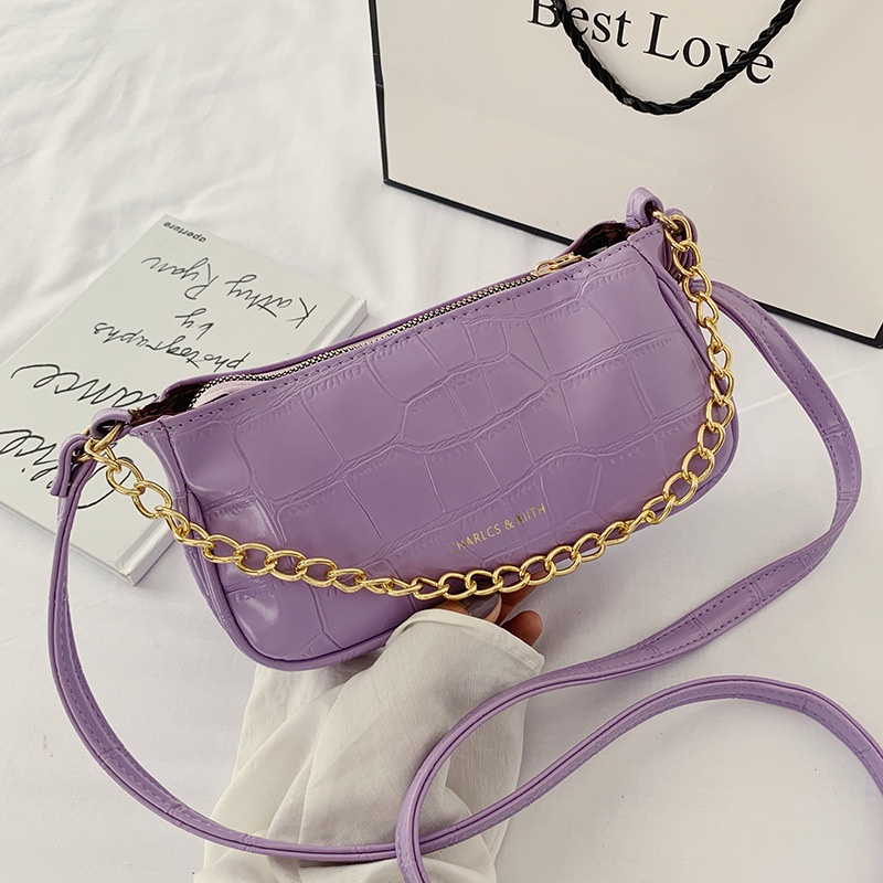 Túi đeo chéo xích thời trang da vân cá sấu dây đeo dài TX066 tím Giá MBP