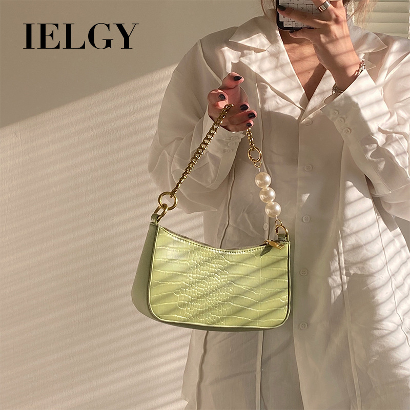 Giới thiệu Túi đeo dưới cánh tay IELGY vân cá sấu vintage có dây xích ngọc trai nhân tạo cho nữ
