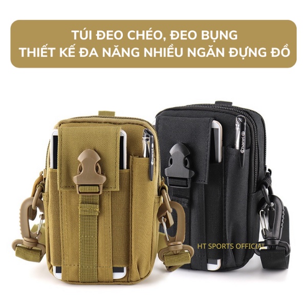Giới thiệu Túi đeo hông, đeo chéo kiểu lính HT Sports nhiều ngăn tiện lợi vải dày dặn chống thấm nước
