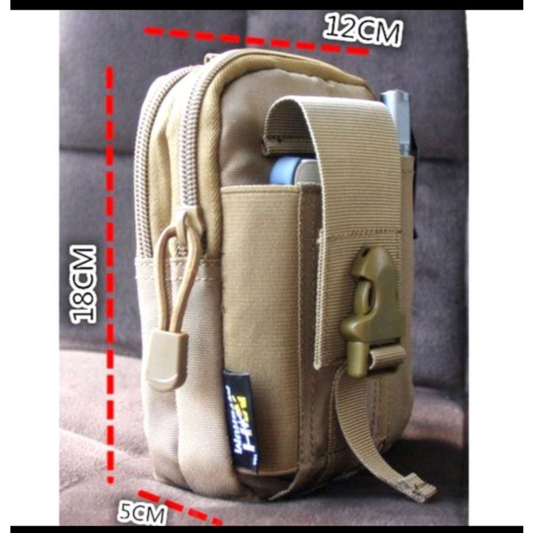 Túi đeo hông - đeo thắt lăng có kích thước 17x12x6cm. Chất liệu vải bố 600D dày dặn, chống nước tương đối, chịu được mưa nhẹ, dày dặn rất khó rách. - Túi có 2 ngăn chính và 2 ngăn nhỏ phụ bên ngoài, đựng được điện thoại, tiền, chìa khóa, bật lửa, v.v... - Túi có thể đeo ngang hông, đeo lưng quần, hoặc trên balo, túi xách, rất thuận tiện, đặc biệt là khi đi xe máy. - chất liệu vải dù chắc chắn giúp sản phẩm luôn bền đẹp trong suốt quá trình sử dụng. Khóa được làm từ kim loại bền và sáng không bị han gỉ tạo nên sự sang trọng cho túi đeo chéo