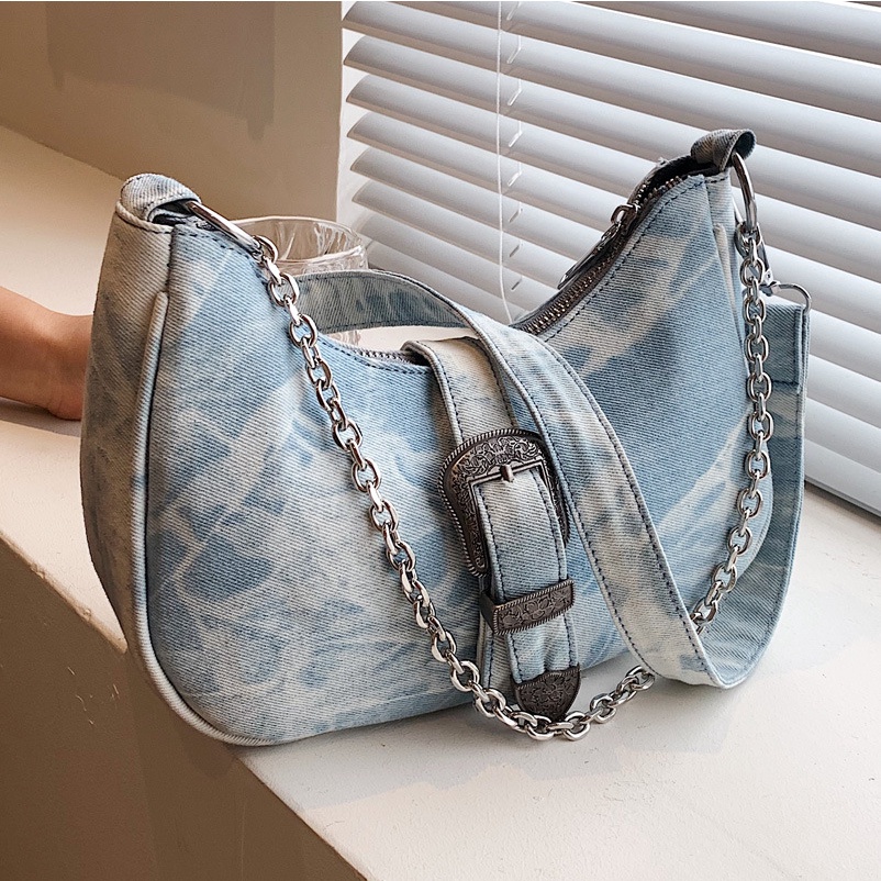 Giới thiệu Túi Đeo JASMIN NOIR Chéo Denim Hình Mặt Trăng Nửa Dây Xích Thời Trang Nữ