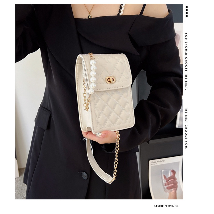 Giới thiệu Túi Đeo JASMIN NOIR Chéo Đựng Điện Thoại Họa Tiết Kẻ Sọc Đính Ngọc Trai Dành Cho Nữ