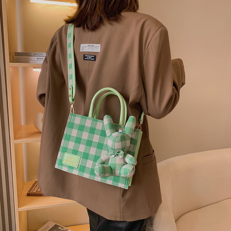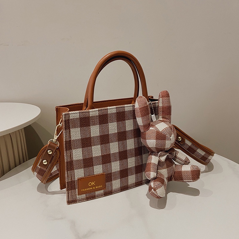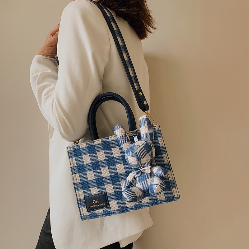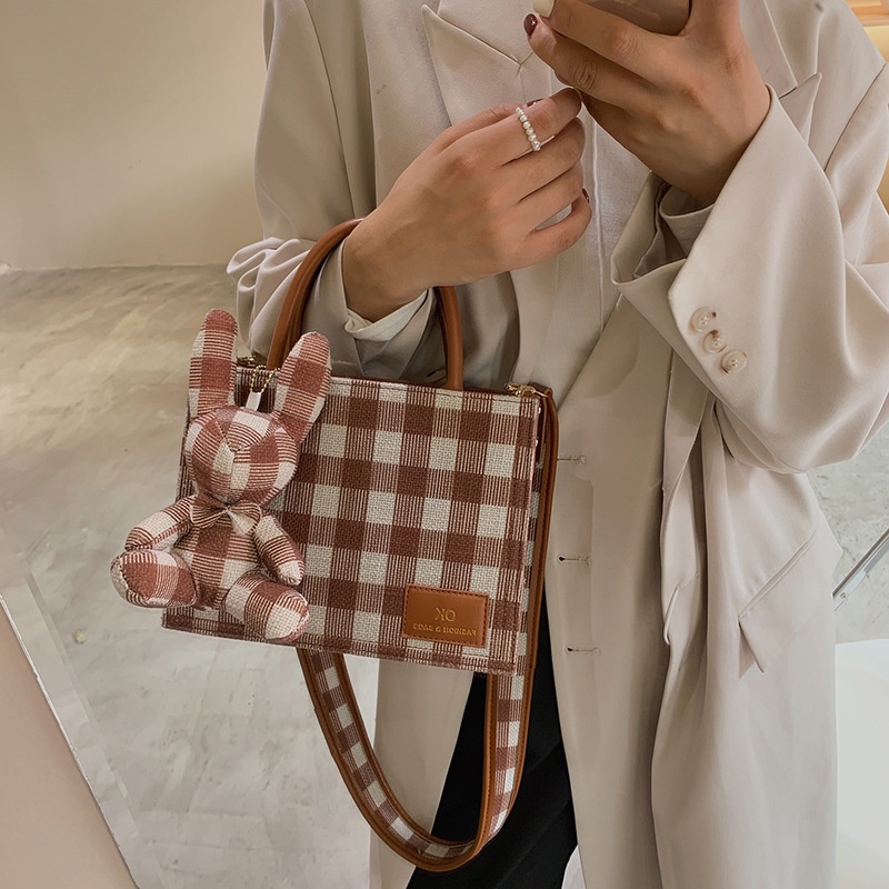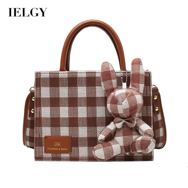 Giới thiệu Túi đeo vai IELGY họa tiết kẻ ô phối phụ kiện trang trí dễ thương thời trang