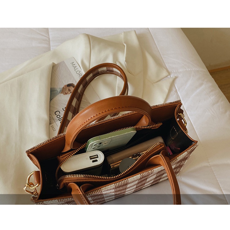 Phong cách: thời trang đường phố Chất liệu: PU Các yếu tố phổ biến: kẻ ô Hình dạng túi: hình vuông nằm ngang Cách mở: dây khóa kéo Họa tiết: Ca rô Có hoặc không có lớp xen kẽ: Không có Số lượng dây đeo vai: 1