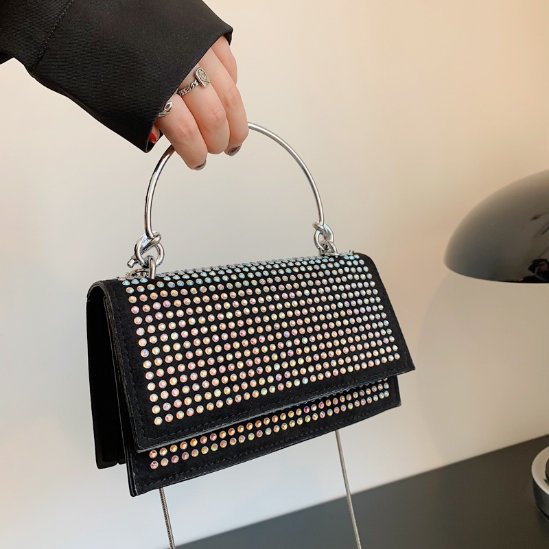 Giới thiệu Túi đeo vai JASMIN NOIR nắp gập đính kim cương giả thời trang dành cho nữ