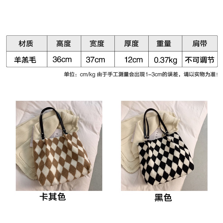 Lining texture: polyester pattern: plain Processing methods: soft surface Bag trend style: Tote bag Outer bag type: inner patch pocket material: plush Popular elements: car suture Strap root number: double root Item No.: TQms7015 Carrying parts: soft handle Hardness: soft Bag shape: horizontal square Opening method: Zipper Bag internal structure: zipper pocket, mobile phone bag, ID bag Style: street trend Main sales areas: Southeast Asia, Africa, Europe, South America, North America, Northeast Asia, Middle East Size: 37cm*12cm*36cm