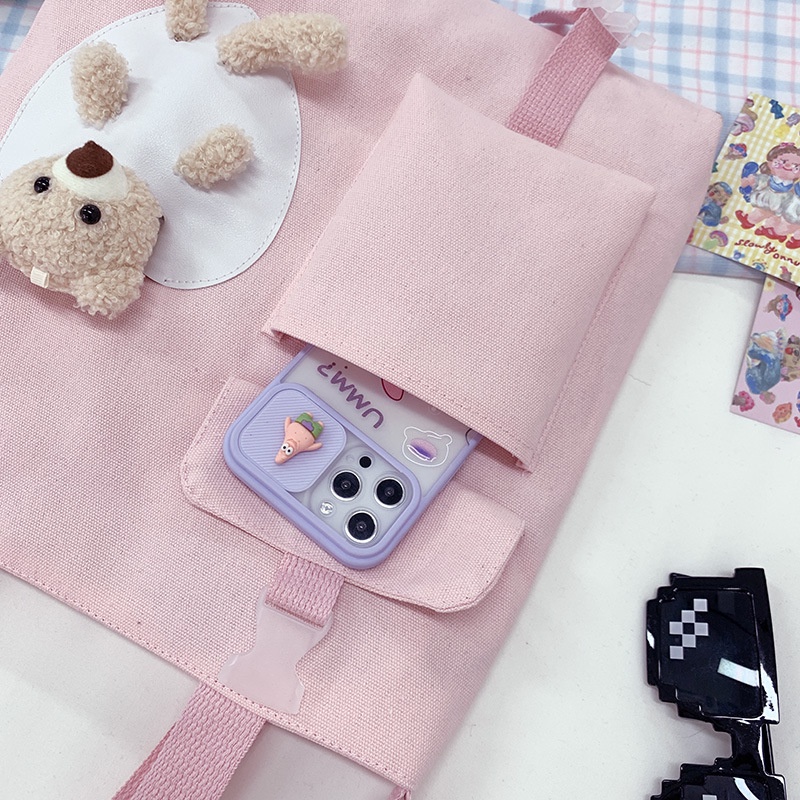 Giới thiệu Túi Đeo Vai Vải Canvas Đính Gấu Bông Dễ Thương Cho Học Sinh