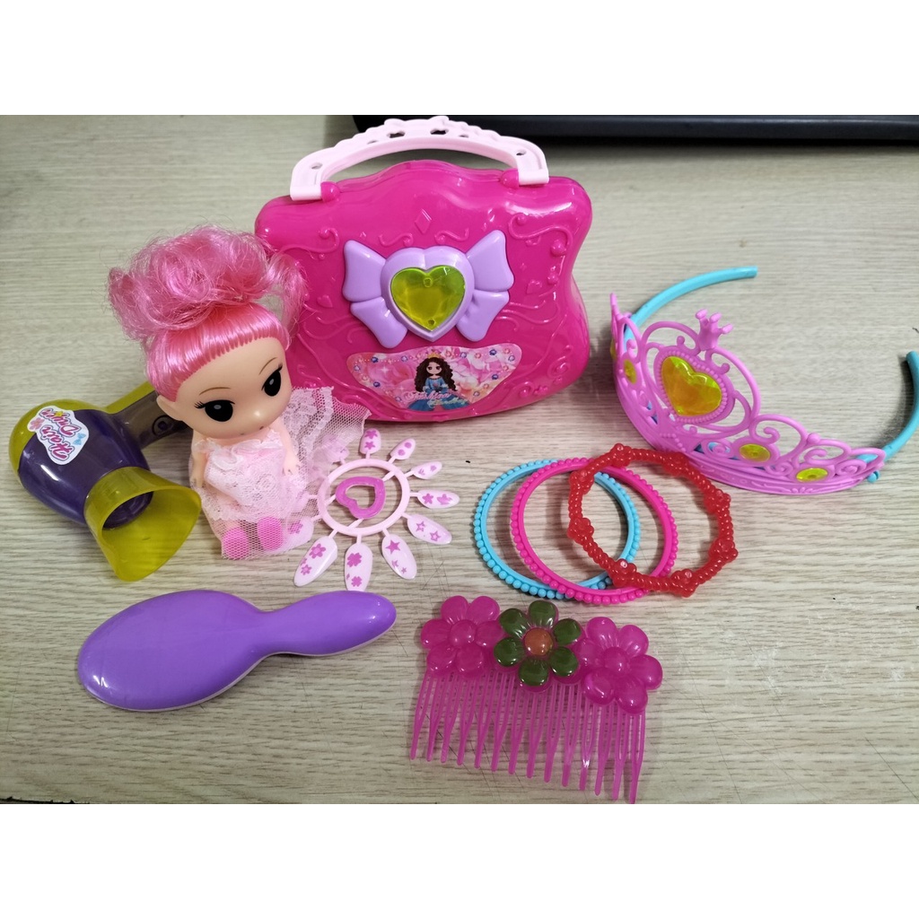 Túi Đồ Chơi Trang Điểm Cho Bé Sản phẩm hoàn toàn mới 100% và chất lượng cao. An toàn và không độc hại bộ đồ chơi bao gồm - 1 hộp túi xách - 1 búp bê xinh xắn cho bé - 1 vương niện - 3 vòng tay - máy sấy tóc và lược... Sản phẩm như hình chụp ạ!